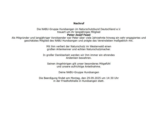 Bereits in den 60er Jahren gab es in Hundsangen eine Vogelschutzgruppe, die Basis für die Gründung der NABU-Ortsgruppe durch Marcel Weidenfeller, Leander Hoffmann, Kurt Herlth und Peter Fasel war. Die Ortsgruppe ist jetzt auf fast 1000 Mitglieder angewachsen. Damit ist sie die größte Umweltschutzgruppe in der Verbandsgemeinde Wallmerod. Seit 2024 besteht eine Kindergruppe (NAJU), in der aktuell mehr als 30 Kinder zwischen 7-11 Jahren aktiv sind