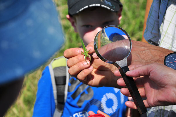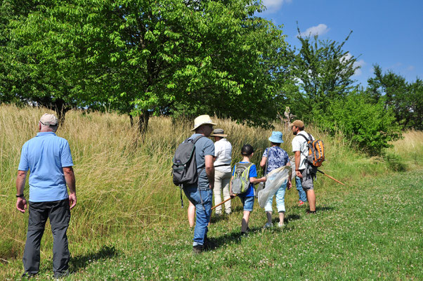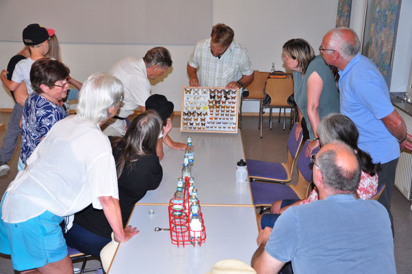 Schachbrettfalter, Braunkolbiger Dickkopffalter und Großes Ochsenauge. Diese Schmetterlinge und einige weitere Arten stellten den Mittelpunkt einer Schmetterlingsexkursion in der Ortsgemeinde Kuhnhöfen dar. Bei sommerlichen Temperaturen war eine Schar von Schmetterlingskundschaftern nach Kuhnhöfen gekommen, um sich den restlichen Nachmittag ausschließlich den flatterhaften Grazien zu widmen. Hierzu begrüßte der Ortsbürgermeister Gerhard Hehl im Namen der Ortsgemeinde Kuhnhöfen sowie Marcel Weidenfeller vom NABU Hundsangen alle Teilnehmer*innen und übergaben anschließend die Leitung an den Naturschutzreferenten Philipp Schiefenhövel der Will und Liselott Masgeik-Stiftung aus Molsberg. In der theoretischen Einführung erfuhren die Teilnehmer einiges über die Biologie der einzelnen Arten, über die Unterschiede zwischen Tag- und Nachtfaltern, über die Sinnesorgane der Schmetterlinge und über die verschiedenen Anpassungsstrategien der Falter. Spielerisch spannte Schiefenhövel die anwesenden Kinder in seine Ausführungen mit ein. Besonders beeindruckt zeigten sich die Teilnehmer*innen von dem mitgebrachten Präparationskasten, in dem die Mehrzahl der westerwälder Tagfalter und ein Teil der heimischen Nachtfalter zu bestaunen waren. Spannender wurde es als die flatterhaften Grazien mit Kescher und Lupenglas draußen in der Umgebung von Kuhnhöfen beobachtet und erlebt wurden. So gingen gingen den Schmetterlingsfreunden mehrere Große Ochsenaugen, der Braunkolbige Dickkopffalter, der Hauhechelbläuling und zahlreiche Schachbrettfalter ins Fangnetz. Mit nur sechs verschiedenen Tagfalterarten blieb die Artenzahl beobachteter Arten, wie vielerorts in diesem Frühsommer im Westerwald erschreckend gering. Die Gründe für das geringe Schmetterlingsvorkommen sind teils klimatisch zu erklären. Es macht zum anderen deutlich, dass das Insektensterben auch in einer so scheinbar idyllisch wirkenden westerwälderGemeinde, wie es Kuhnhöfen ist, angekommen ist. Neben den verschiedenen Schmetterlingsarten konnte die Forschergruppe weitere diverse Wiesenbewohner, wie etliche Heuschrecken, Spinnen, Wanzen, Käfer und vieles mehr fangen und bestaunen. Begeistert von der Vielseitigkeit der Insektenwelt kehrte die Gruppe nach 3 Stunden zum Ausgangspunkt zurück, wo sich Gerhard Hehl und Marcel Weidenfeller beim Referenten und den Teilnehmern für die gelungene Exkursion bedankten.